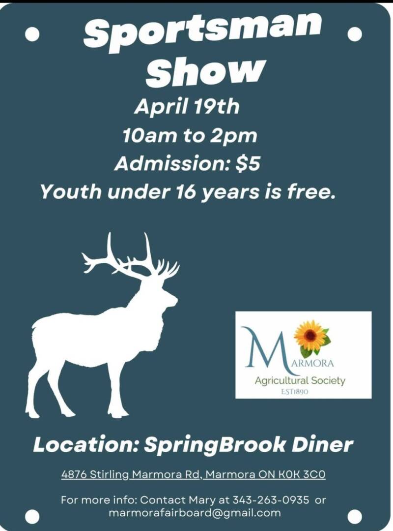 The Annual Sportsman Show is the second Saturday in April For further inquiries Please contact Mary Woodcock at 3532630935 or email to wood72@hotmail.ca