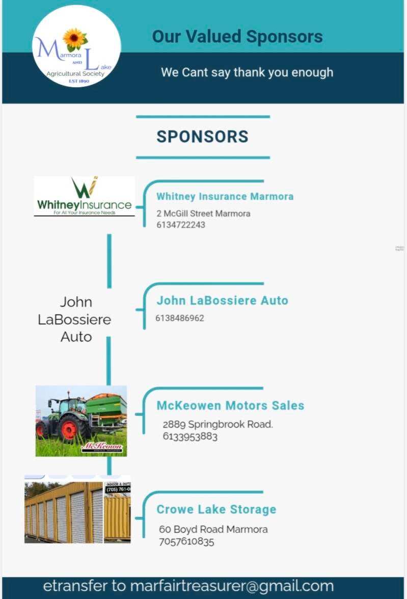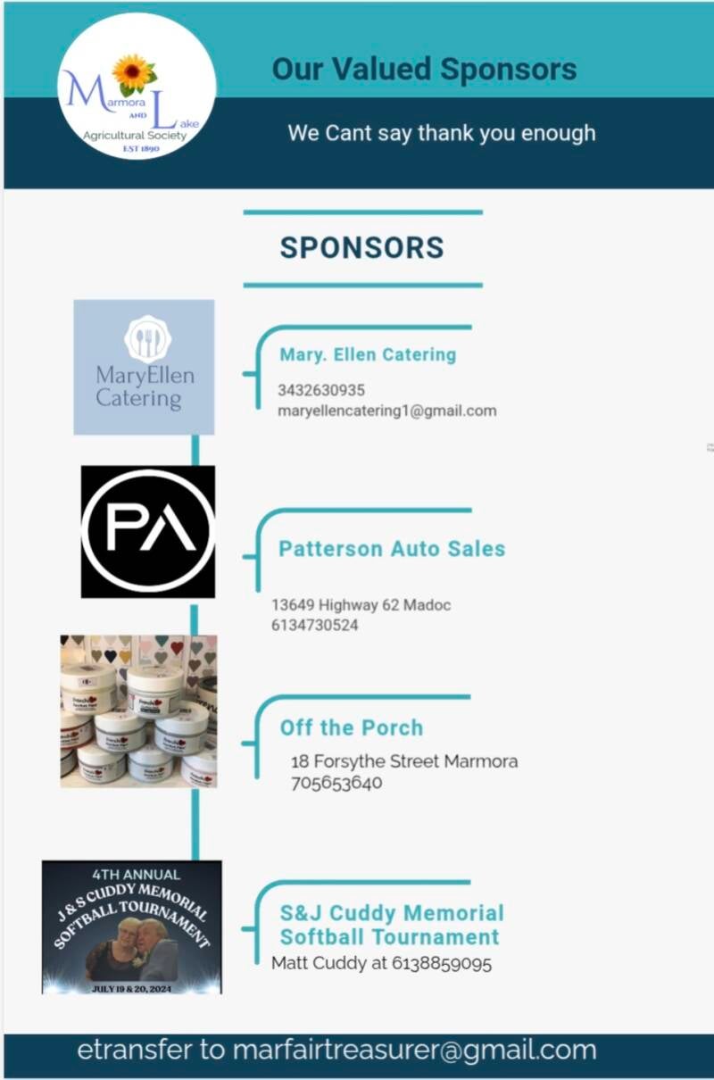 Sponsors are welcome to join the Marmora Agricultural Society in celebrating our rich agricultural heritage and uniting the community. Your partnership sustains our cherished traditions and vibrant local events.